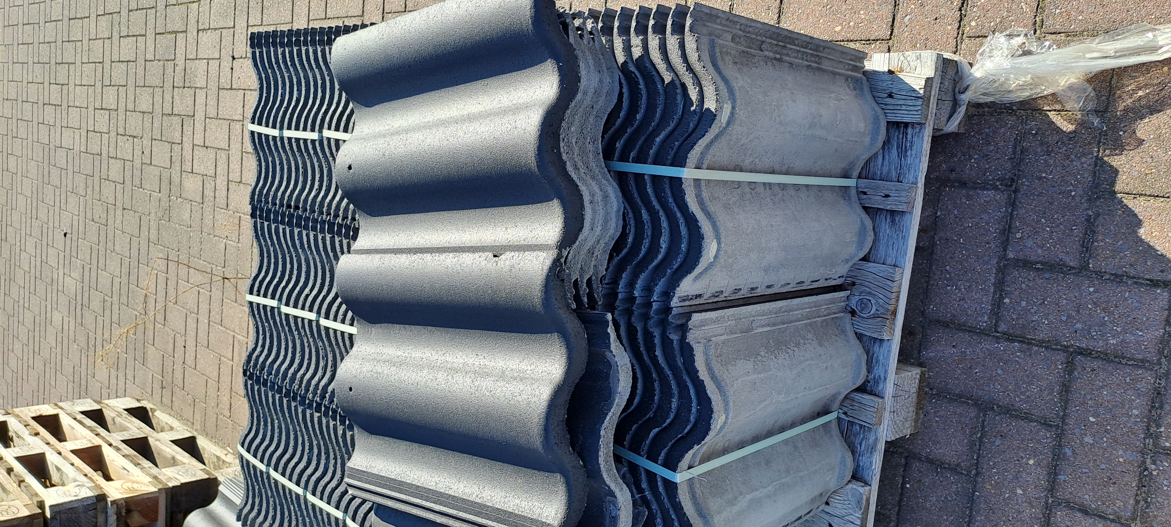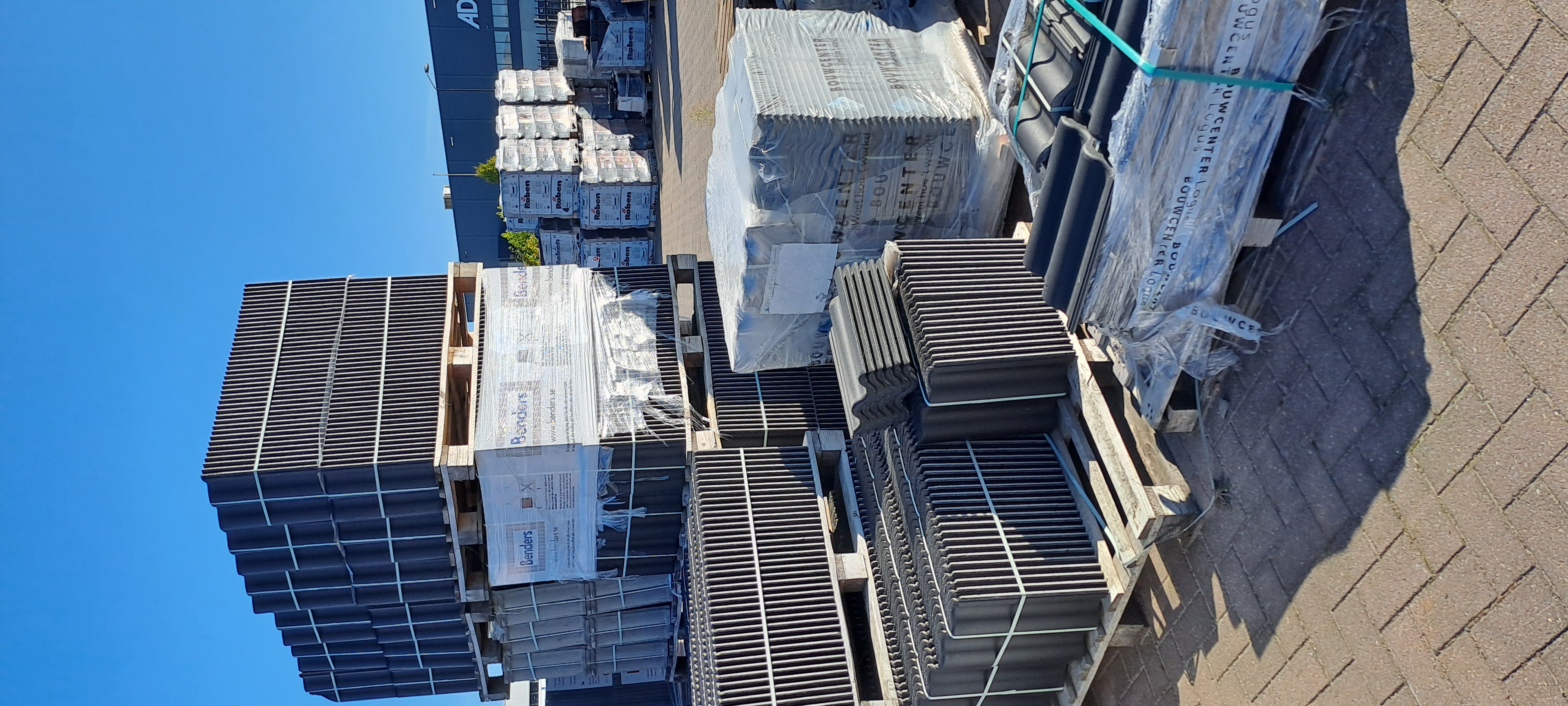 Productinformatie: specificatie:2375 stuks dakpannen, 10 stuks rechtse & 23 stuks linkse gevelpannen, 12 stuks vorsten, 3 stuks eindvorsten & 4 stuks beginvorsten